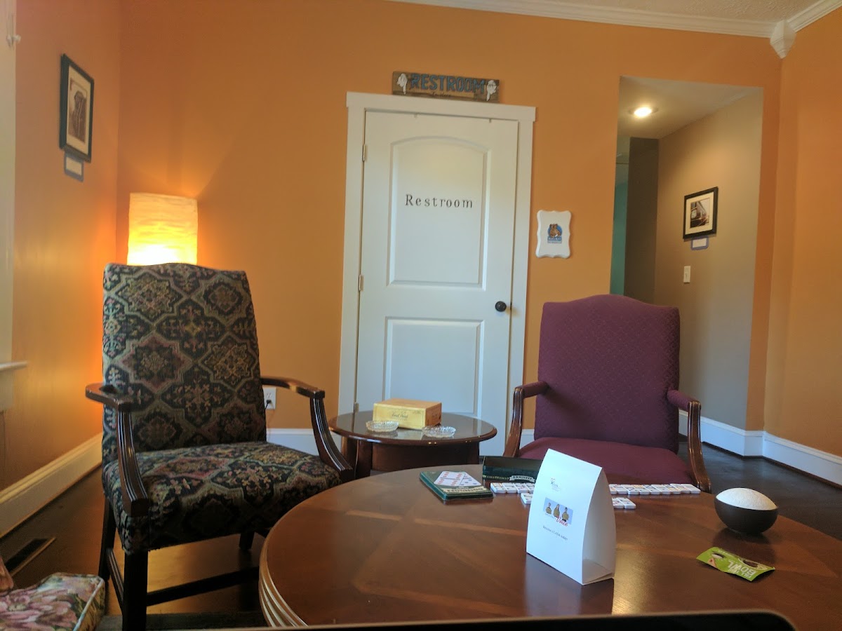 As you step inside, you'll be greeted by a cozy atmosphere that feels like a welcoming home. The café is beautifully decorated with a unique flair in different rooms, featuring plush couches, comfortable chairs, and quaint coffee tables perfect for casual conversations. For those who prefer a more traditional setting, there are standard tables and chairs available as well.